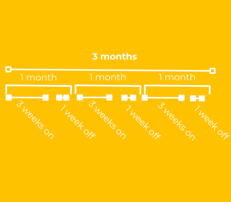 Within each month have 3 weeks ‘on’, 1 week ‘off’